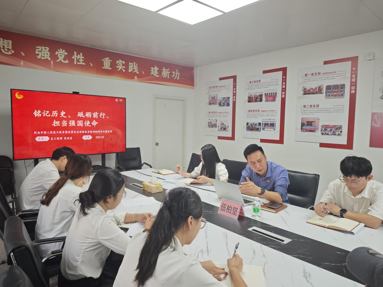 会议组织开展了“纪念中国人民抗日战争暨世界反法西斯战争胜利80周年”专题党课学习,由白云山陈李济总工程师伍柏坚主讲。