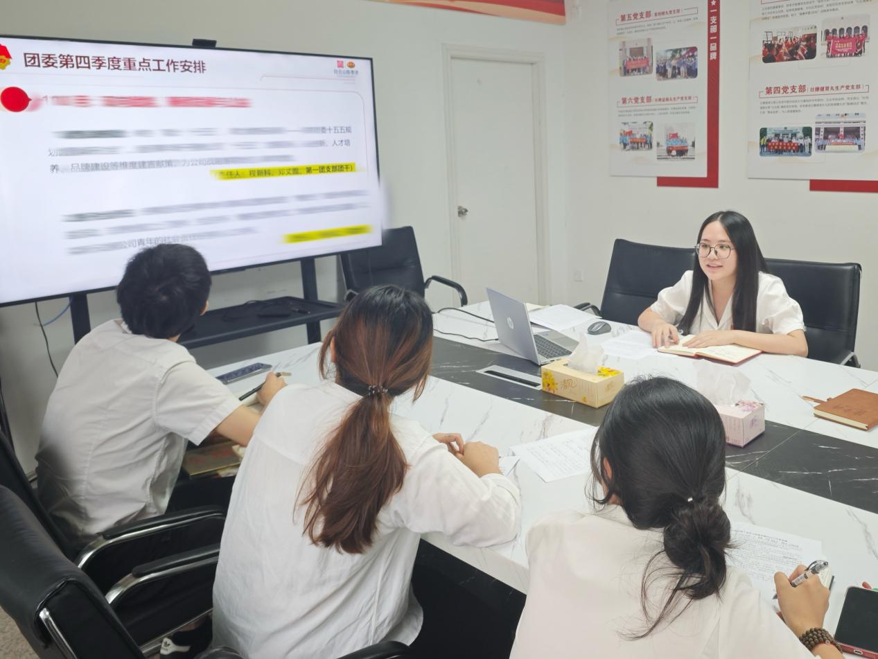 随后,公司团委书记何嘉倩结合公司“十五五”规划制定需求与青年工作实际,对团委第四季度重点工作进行系统部署:提出以“全民爱腰志愿服务队”为核心载体,持续深化“下沉一线、助力营销”工作机制,通过党团联动整合组织力量,引导青年深度参与终端销售服务与市场推广;同时兼顾公益属性,依托陈李济“中华老字号”底蕴与中药文化、陈皮文化资源,深耕品牌文化传播;同步要求全面复盘本年度团委工作成效与不足,开展表彰活动,以榜样力量推动青年工作持续提质;并明确各任务的具体责任人和推进节点,建立“任务到岗、责任到人”的落实机制,确保事事有抓手、件件有着落。