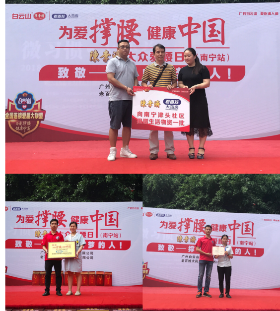 2018年6月16日,在父亲节和端午节来临之际,“为爱撑腰 健康中国——陈李济大众爱腰日”社区公益活动在广西南宁津头社区举行。 吉尼斯世界纪录“全球最长寿药厂”——广州白云山陈李济药厂有限公司(简称白云山陈李济)联合老百姓大药房连锁(广西)有限公司,为南宁市津头社区的居民提供免费义诊、健康保健知识等服务,向社区的居民们带来了节日的祝福。