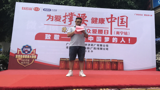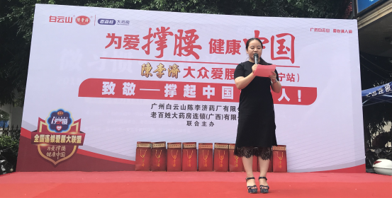 白云山陈李济广西省区经理毕子建在致辞中提到:“为爱撑腰 健康中国——陈李济大众爱腰日”是由白云山陈李济联合全国各地主流连锁药店,针对发病率逐年上升的腰椎疾病向公众个人提出爱腰护腰的系列主题日活动。2018年陈李济携手全国各大连锁药店将“大众爱腰日”公益项目进行升级,组建全国连锁“爱腰联盟”。该联盟将致力于守护撑起“中国速度”快速发展而默默贡献的人群,老师、警察、消防员、司机、工程师、环卫工……他们一直默默地辛勤劳动与付出,成为中国飞速前进的主动力,为中国崛起撑腰,撑起了中国自信面向全球的脊梁骨。但是这些人群都无一例外面对着腰部问题带来的威胁,重视腰部问题的防治显得刻不容缓。