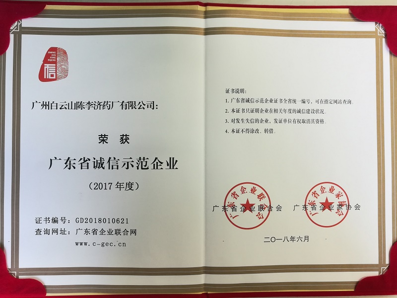 6月14日上午,由广东省企业联合会、广东省企业家协会主办的广东省弘扬优秀企业家精神暨诚信建设大会在广州白云国际会议中心举行。全国人大原常委、省人民政府原省长黄华华、中国企业联合会常务副会长兼理事长朱宏任、省企联原常务副会长梁灿盛,省企联执行会长孟云娟,省国税局、省总工会、省人力资源和社会保障厅、省商务厅、省工商局、省社科院等有关部门领导等出席大会。广东省弘扬优秀企业家精神系列活动在大会上正式启动,多家企业共同签署了诚信公约,全省各行各业的企业家代表、专家学者900多人参加大会。大会对2017年度广东省优秀企业、广东省优秀企业家、广东省最佳诚信企业、诚信示范企业进行表彰,陈李济凭借良好的品牌信誉,荣获“广东省诚信示范企业”称号,为公司增添光辉。