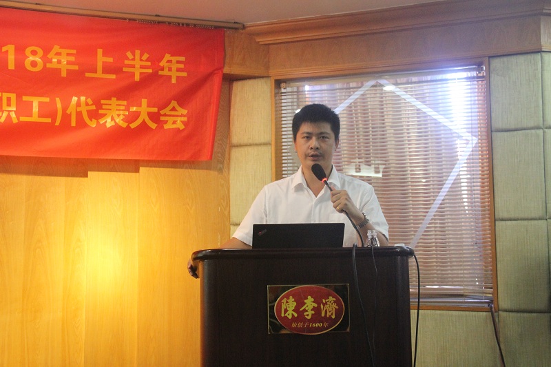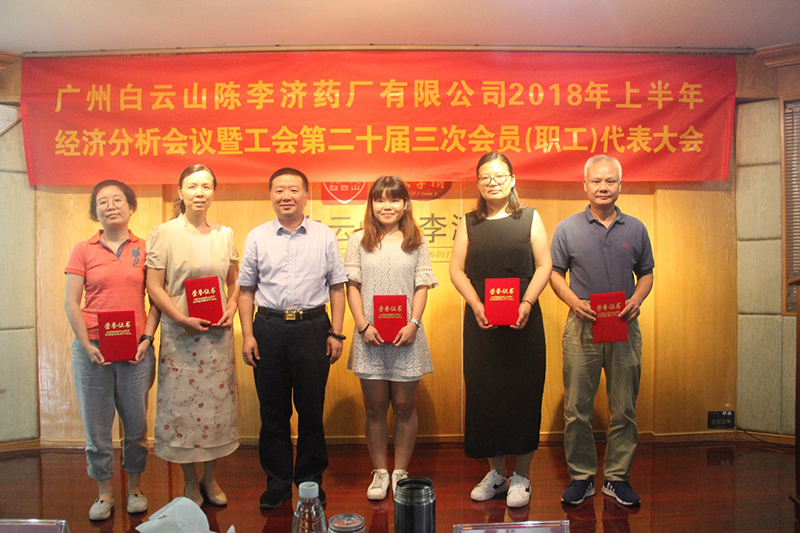 7月31日上午,广州白云山陈李济药厂有限公司2018年上半年经济分析会暨工会第二十届三次会员(职工)代表大会在公司四楼职工之家召开。会议回顾总结2018年上半年工作,深刻分析存在问题,并对下半年工作进行部署。 集团党委委员、工会主席李锦云出席会议并作重要讲话。公司党委书记、董事长石洪超就2018年上半年工作总结及下半年工作计划作专题报告,公司副总经理王建平、莫国强、夏湘龙分别就生产供应、科研质量、营销作2018年上半年工作总结及下半年工作计划。公司生产技术部、质量管理部、研究所负责人各自针对部门上半年工作及存在问题作专题发言,李绪昂总监作战略管理回顾与规划。会议由公司党委副书记、纪委书记、工会主席陈进伟主持,公司中管人员、高级职称人员、博士、主管、职工代表等百余人参加会议。