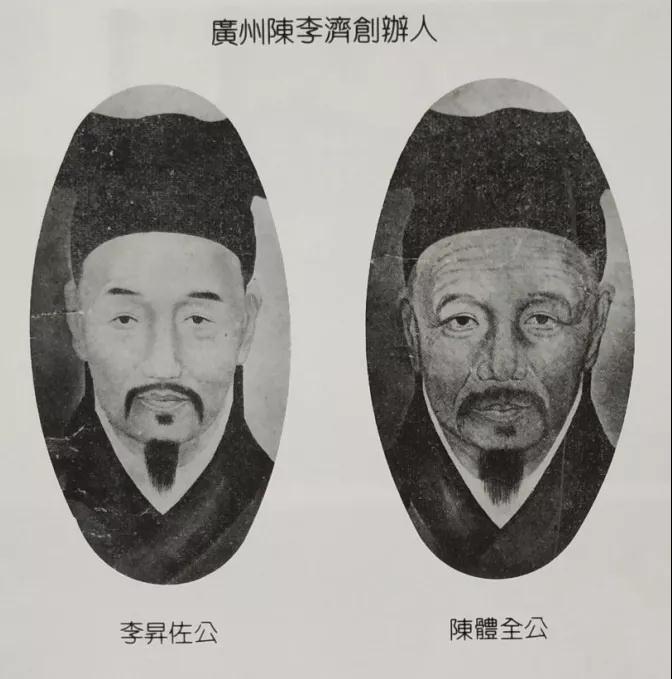 ▲广州陈李济创办人李昇佐公(左),陈体全公(右)(图片采自《陈李济药厂创建三百八十五周年纪念.1600-1985》第1页)
