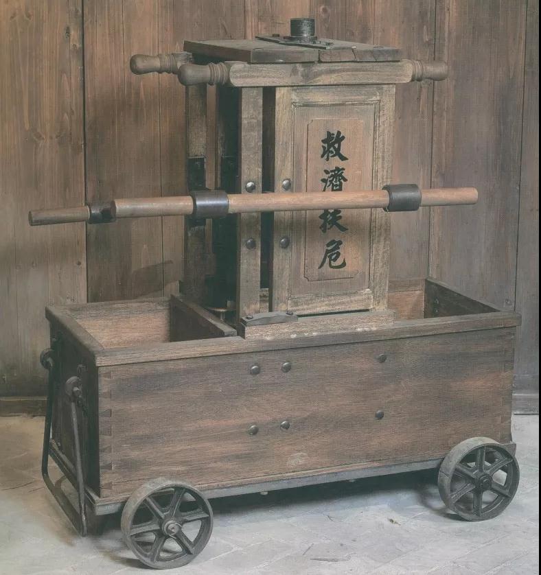 ▲陈李济进口的消防车模型,刻着“陈李济”和“救济扶危”的老铺条规。(图片采自《2012广州市第三届广府文化节:医药文化传承》第25页)