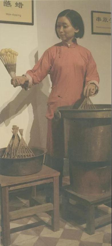 ▲蜡壳丸蘸蜡场景。(图片采自《南药瑰宝陈李济:健康养生四百余年》第14页)