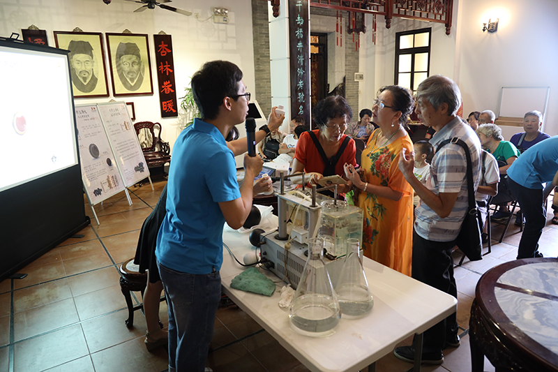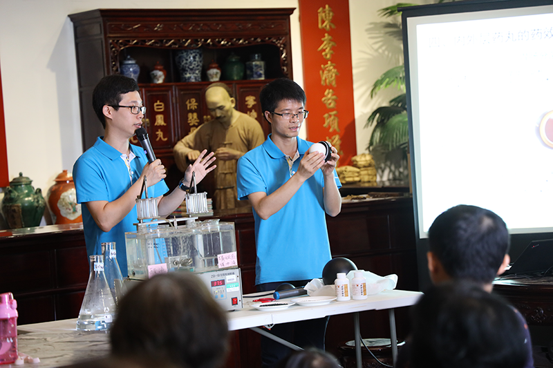 活动中,陈李济的老师现场为大家讲解了采用新技术新工艺研制胃肠分溶型双层丸新中药制剂,获得国家发明专利的补脾益肠丸的工艺特点及治疗慢性结肠炎和溃疡性结肠炎方面的效果,可针对上述的脾胃病。外层丸先在胃中溶解,起到补中益气、健脾温阳、调理脾胃、增强体质的作用;内层丸进入十二指肠和小肠才溶解,提高了药物在肠病变部位的局部浓度,使之能迅速消除腹泻、腹痛、腹胀等症状,加速炎症和溃疡组织的愈合,提高了药物疗效。讲课中,运用了药丸放大的模型、PPT展版,更直观地展示了药丸工艺特点,还用一台“崩解仪”做了演示,模拟药丸进入胃、肠部的溶解变化过程,在场的市民们兴致勃勃的观看了整个演示过程,不断的向老师提问和交流,对夏季正确护养脾胃尤其重视。