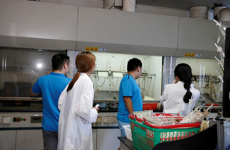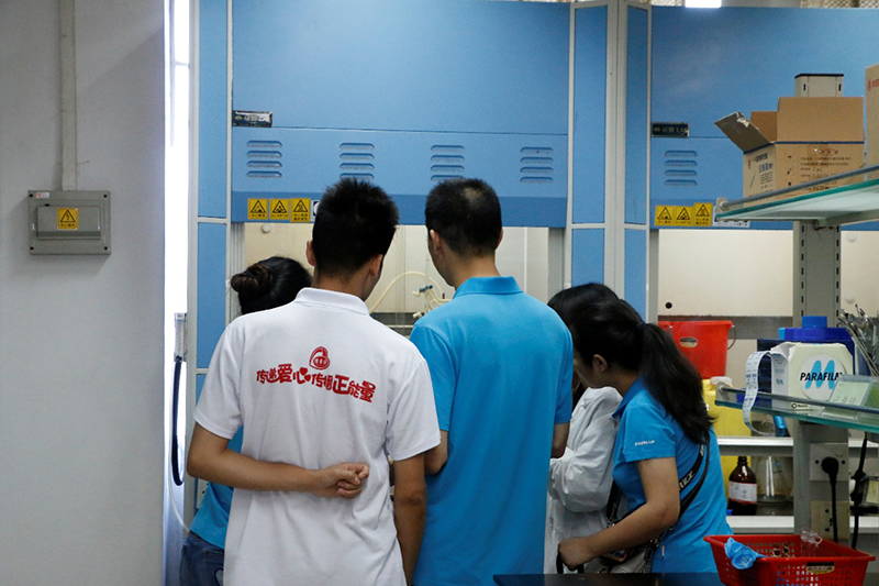 上午11点左右,里水厂区三、四车间工艺员和QA到达检验中心化验室。化验室主任王凌伟向大家大致介绍了化验室的情况后,由化验室主管刘敏带着驻点员逐个介绍每一间功能室的人员组成和设备功能,并由该室的小组长具体介绍他们的日常工作。参观完化验室后,驻点员表示:化验室设备设施虽然多,但非常干净整洁;检验项目繁多,却井井有条。希望有更多机会来参加化验室,换位思考,相互学习。