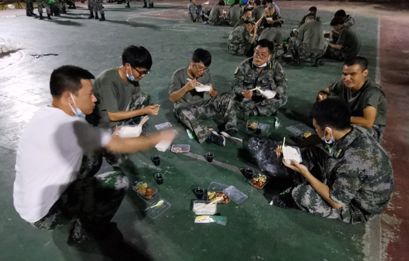 从3号到17号,一共值守了15天,工作时长达超一百小时,对于以前没吃过苦90后为主的队伍,真要“上场”时行不行?广药民兵应急分队的队员们用行动告诉你,行!穿上迷彩就是兵,面对高强度工作条件和感染风险,没有一个人叫苦叫累或言退出。由于任务期间需要不停奔跑,每个战友脚早已打起了血泡……我们经常互相调侃队友是难兄难弟,户外高温时汗水从里面湿透到外面,而狂风暴雨时我们一个个成了“落汤鸡”。 虽然天气变幻莫测,但我们依然出色完成了广州市民兵应急队交付的抗疫任务,看新闻报道,我们的工作起到了很大的成效,疫情没有扩散到外面,发病人员都是在围闭区里面的。相信疫情很快过去,同时我们很快能回家和家人团聚。