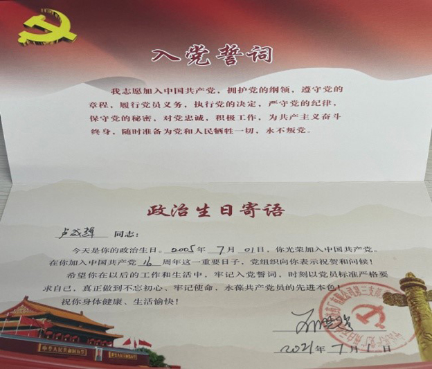 政治生日活动的重要环节:支部书记向“政治生日”的党员表示祝福并送上“政治生日”赠言,赠送“政治生日”贺卡和纪念本,这是满满的仪式感和荣誉感,更是组织对党员的时刻关怀之情。