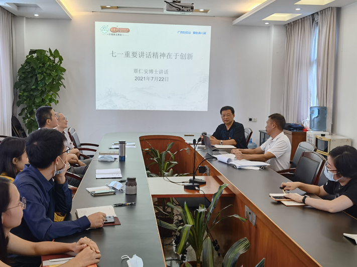 最后,覃仁安副总经理强调,一百年来,中国共产党团结带领中国人民,以“为有牺牲多壮志,敢教日月换新天”的大无畏气概,书写了中华民族几千年历史上最恢宏的史诗。七一讲话精神在于创新,结合到我们的工作上,科研工作是有困度的,不会一蹴而就的,因此,我们面对困难,一定要有勇气,做到遇山开路,遇水搭桥,认认真真解决困难,开发新产品,有竞争力的产品要做大做强,落实到具体的项目,补脾益肠丸、昆仙胶囊的项目要认真动脑解决问题,争取早日出成果,为实现十四五规划做出贡献。