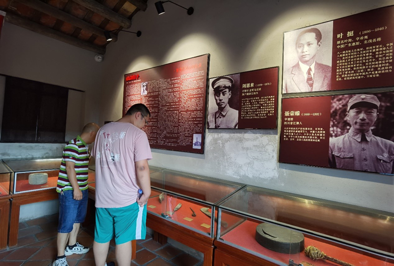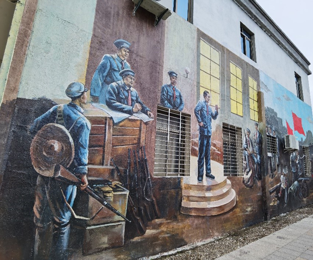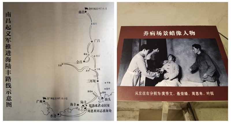 沿着汕尾金厢海滩一直往前开就到了黄厝寮村,村里的房子涂鸦是南昌起义和周恩来同志在汕尾的活动墙画,村中央就是八一南昌起义时期周恩来同志抢渡碣石湾居址。虽然写着开放时间:9一17点,现在已过17点仍是络绎不绝的人群,居址为土木结构三合院,正厅陈列周恩来送给黄秀文的保密铁箱、黄秀文写给周恩来的书信和军装等物品,以及周恩来、叶挺、聂荣臻等人相片,卧室再现了周恩来养病场景,侧厅及厨房是黄秀文父母为周恩来煮饭、煲药等场景。