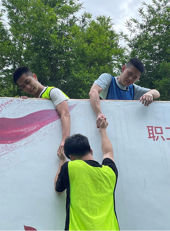 能够与年轻的血液共同参与新员工拓展训练营,是一项挑战也是宝贵的体验。短短两日里,我在和队友并肩作战的过程中,深刻体会到团结协作的重要性,我们每个人都有各自的长处,在日后工作的过程中,我们应该更好地互相配合,学习对方身上的闪光点。训练营让我最深刻的是毕业墙环节,在完成这项艰难的“爬墙”任务之前,我误以为这是不可能的,但事实告诉我,办法总比困难多。在各位队友的共同努力下,我们达成了任务,越过障碍,攀上高峰。这次经验将勉励我在今后工作遇到困难时,不要第一时间放弃,不能轻易退缩,要勇于克服畏难情绪,主动寻求路径和资源解决问题。最后,十分感谢人力资源部的同事组织、陪伴我们度过了这次训练营,同时非常感谢“天下无双”队的队友对我的包容和帮助,祝福大家在日后的工作中再创佳绩。