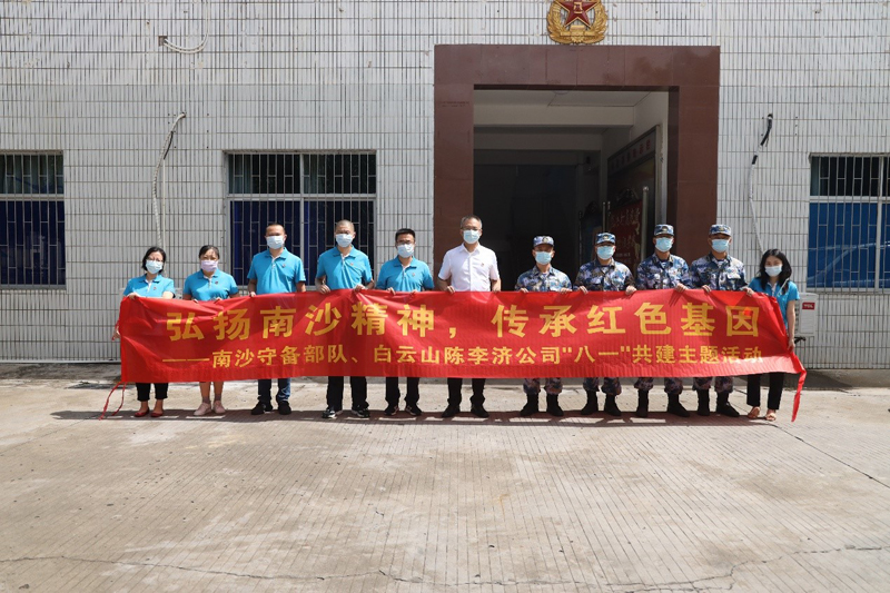 在交流共建座谈会上,孙东代表陈李济向南沙部队全体官兵致以节日祝贺和诚挚慰问,赠送喉疾灵胶囊、穗抗一号、济湿茶及刺柠吉饮料一批,并赠送了企业《革命先驱杨殷》连环画,号召陈李济全体党员干部向部队官兵学习,弘扬和传承“南沙精神”。