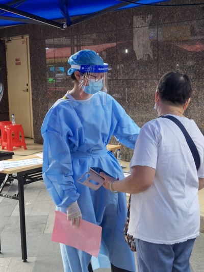 我叫陈燕萍,是生产一线的一名班组长,一名共青团员,更是一名入党积极分子。4月10日是我第一次参加社区核酸检测志愿服务。当天烈日炎炎,经受“烤”验,汗湿衣服拧出水,我一边在核酸现场维护秩序,引导老人如何打开核酸码, 一边安抚居民的情绪,耐心反复地跟大家进行心理疏导。虽然一天下来很累,但每听到居民口中说着“感谢你们,没有你们帮忙我们都不知道怎么办啊,辛苦你们了!多亏有你们!”等等感谢的话语,让我感觉一切的辛苦都是值得的。疫情无情,人间有爱,所到之处皆是温暖,所有一切都能感觉这人间值得!