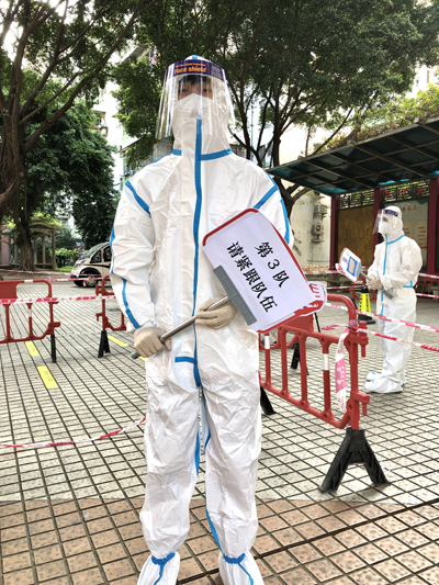 我叫余德铭,是生产一线的一名操作人员,是第六团支部一名共青团员,也是公司疫情防控志愿服务队(青年组)的一员。因为坚信着“为人民服务”信念,我多次响应公司号召,在完成本职工作后,赶往社区支援大规模核酸检验工作。支援社区志愿服务的这些天,在每天支援结束后,我总是有意最后一个离去,因为看着志愿服务队友们都安全归家,我才放心。有一句口号说得好:广州有我在,疫情跑得快!抗击疫情,人人有责!