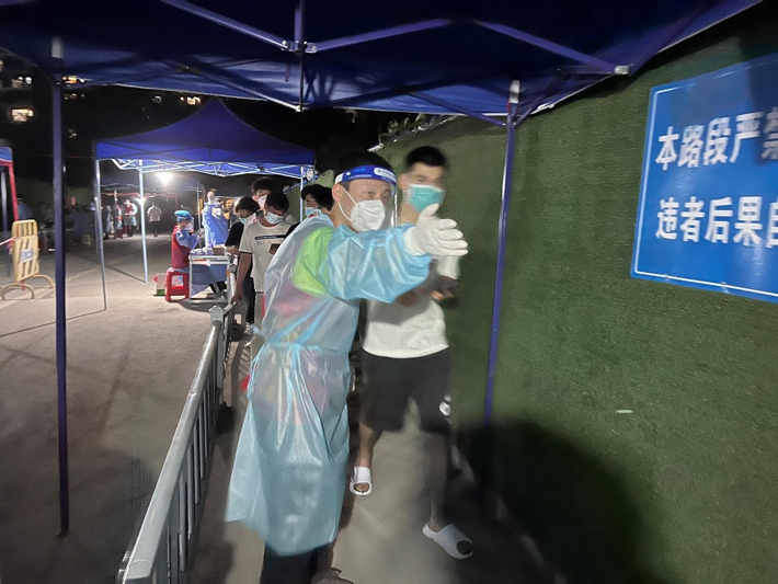健康产品部赖浩源4月8日晚得知要开展全员核酸检测,主动报名当起了志愿者,自4月9日起坚守在同和街榕树社区核酸检测点,协助检测市民扫码、分组,清点人数,将小组引导到核酸采样处等工作,每天从早到晚10小时以上,直至完成整个片区检测任务才收工,不久又马上投入到新一轮的忙碌,17日晚21时完成社区第六轮核酸检测,连日累计服务时长达95小时。