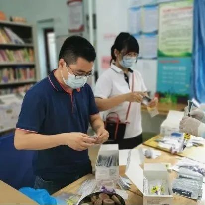 13日,陈洪宣、林恩夫妇连续第6天支援白云区同和街道,因白云区临时进行抗原自测工作,在物资没到位前,云盾信息查验工作紧,上午在社区进行信息查验工作,中午开始进行抗原自测物料分装,下午承包到户,完成3梯36户自检试剂分派和信息登记,解释自检注意要点及讲述结果上报程序。期间,有几户只有老人独自在家,无法完成自检,在做好安全防护的情况下,他们耐心帮助老人家进行检测,并协助完成上报,确保楼栋全覆盖完成自检工作。