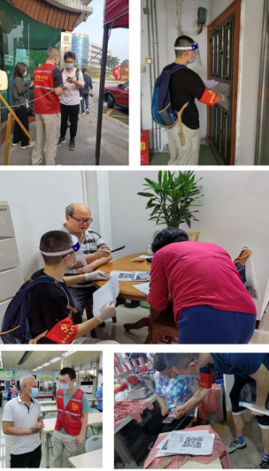 3月18日早上7:20-8:30杨永成在配合公司安全保卫部对公司员工进行测温及检查健康码工作后,组织了4名团员青年下沉到池滘社区支援基层,通过走访居民楼逐门逐户进行有重点区域旅居史危险人群的摸查工作。面对居民的不解和疑惑,他耐心进行解答和引导;听到街坊们的感谢,他由衷的高兴与振奋。