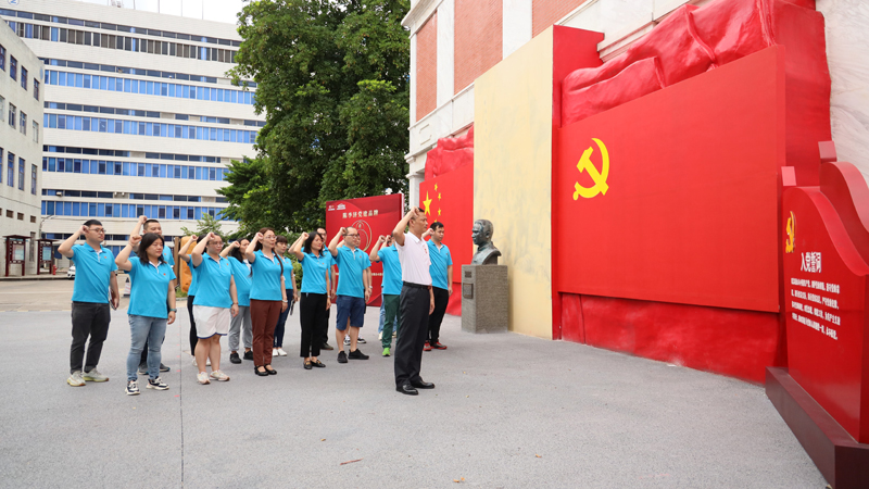 2022年07月01日上午第八党支部全体党员与工团代表于公司二楼会议室召开支部大会。会前八支部全体党员在党委副书记、工会主席陈进伟同志的带领下在英雄广场,面向党旗,庄严宣誓,重温入党誓词,牢记初心使命,用实际行动践行伟大建党精神。