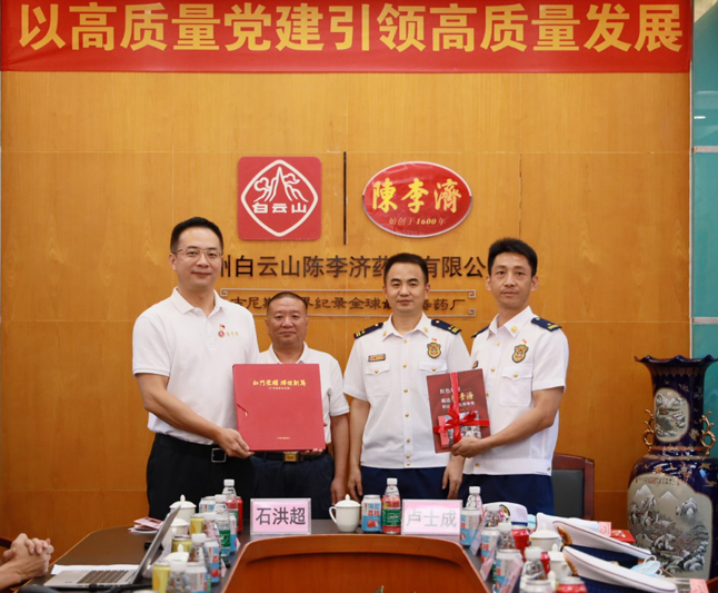为庆祝中国共产党成立101周年,喜迎党的二十大胜利召开,7月7日,广州市消防救援支队特勤大队党委书记卢士成、党委委员曾海清一行15人来到陈李济公司,与陈李济党委开展“逆行担使命 济世显情怀”为主题的联学共建党日活动,陈李济公司党委书记石洪超、总经理孙东、党委副书记陈进伟等12名党员代表参加。通过签约共建、座谈交流、重温入党誓词、参观杨殷事迹陈列馆和陈李济中药博物馆、文化园等,激励党员坚定理想信念、忠诚履职尽责、勇于担当作为,以实际行动和优异成绩迎接党的二十大胜利召开。