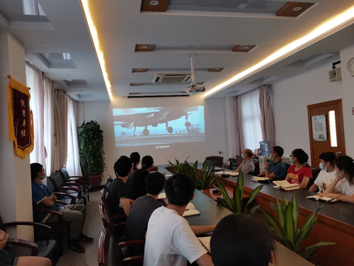 《深蓝深蓝》,是在人民海军成立73周年之际,向社会公开发布的航母宣传片,小视频通过不同战位海军战士的工作实况,展现新时代中国海军官兵踔厉奋发,笃行不怠,埋头苦干,奋楫争先的价值追求,使我们领略到海军航母部队建设的艰辛历程和取得的巨大成就,同时感受到广大官兵勇毅前行,向海图强,奋斗强军的风采。党支部书记郑炳元同志以影片情节“在航母上10年,战位在甲板下20米的深舱,期间只有四次上甲板的机会,官兵把上甲板看歼-15起降作为生日愿望”谈了自己的感受,“以社会分工越来越细,每个人都有自己的岗位,要忠于职守,爱岗敬业”与大家共勉。