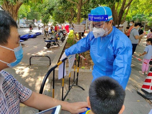 今年五月入职已投身三次抗疫活动的先锋叶翰良脸上总洋溢着乐观的笑容,他用浑厚的嗓音数日维持着大规模核酸排查的秩序。“如果看到腿脚不便的老人家我会想办法让他们先行。”“我把拥挤的队伍分流到人少的队伍中,确保大家能安全快速地做上核酸。”他细致地观察,并及时给予居民帮助,成为抗疫队伍中一道闪耀着光辉的风景线。