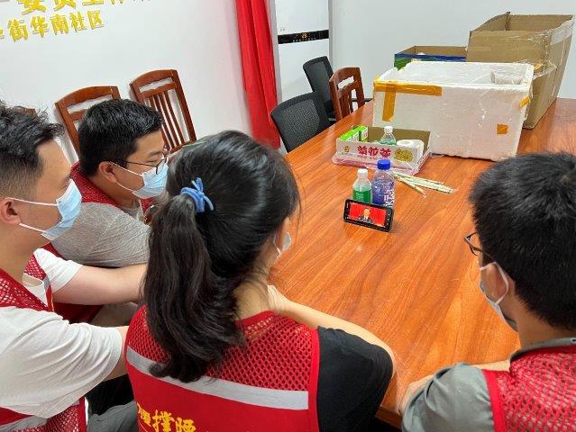 紧张的支援任务之余,团员在华南社区居委休息室关注党的二十大最新消息。他们认为身处抗疫一线,更应提升思想觉悟,知行合一,为社会担当责任,贡献自己的一份力量!我们当代中国青年生逢其时,要坚定不移听党话、跟党走,怀抱梦想又脚踏实地,敢想敢为又善作善成,让青春在火热实践中绽放绚丽之花。