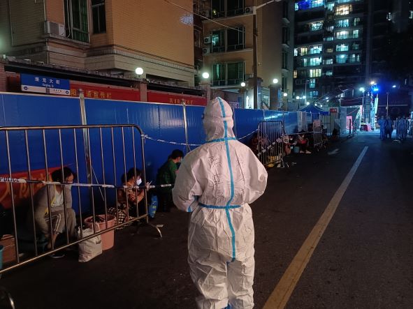 钟钰菁在校期间养成了早睡早起的生活习惯,自律的作息习惯在第一次通宵志愿服务后就被打破了。那天是11月2日晚,康鹭片区需要安排大量居民转运至其他地方隔离。天气有些寒凉,晚上7时整,钟钰菁已换上“大白”等候社区安排。由于情势复杂,人员的调动和安排顷刻间都有所变化,钟钰菁等到了晚上11点,才正式进入任务。