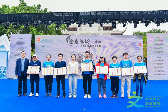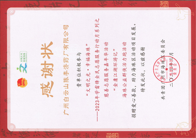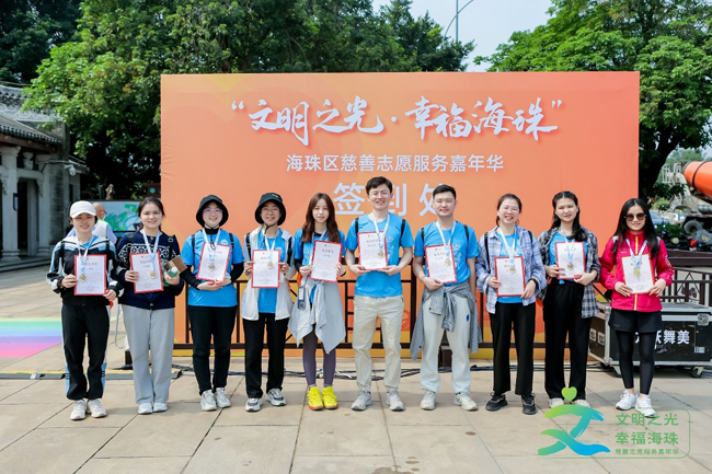 海珠区团委书记魏巍同志向陈李济等多家积极参与公益志愿活动并捐赠善款的单位颁发了感谢状。