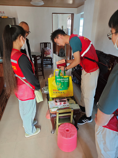 经过岗前培训,志愿者们3-4人一组按照海珠区青年志愿者协会制作的长者信息卡上的信息提前打电话联系确认,带着爱心物资和家庭常备药出发前往长者家里。