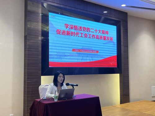 此次培训特别邀请了广东省总工会干部学校副研究员、高级政工师朱志惠,朱教授围绕增强工会政治性这一灵魂,突出理论教育和党性教育这个主业主课,以《学深悟透党的二十大精神,促进新时代工会工作高质量发展》为题,重点讲述了党的二十大报告中的新表述、新概括、新论断及有关“工会”“劳动”“职工利益保障”相关表述,给出了“三把钥匙”解锁党的二十大与新时代工会工作的结合点,指出了新时代工会工作贯彻落实党的二十大精神的重点任务,让学员们打开了眼界、打开了思路、打开了胸襟。