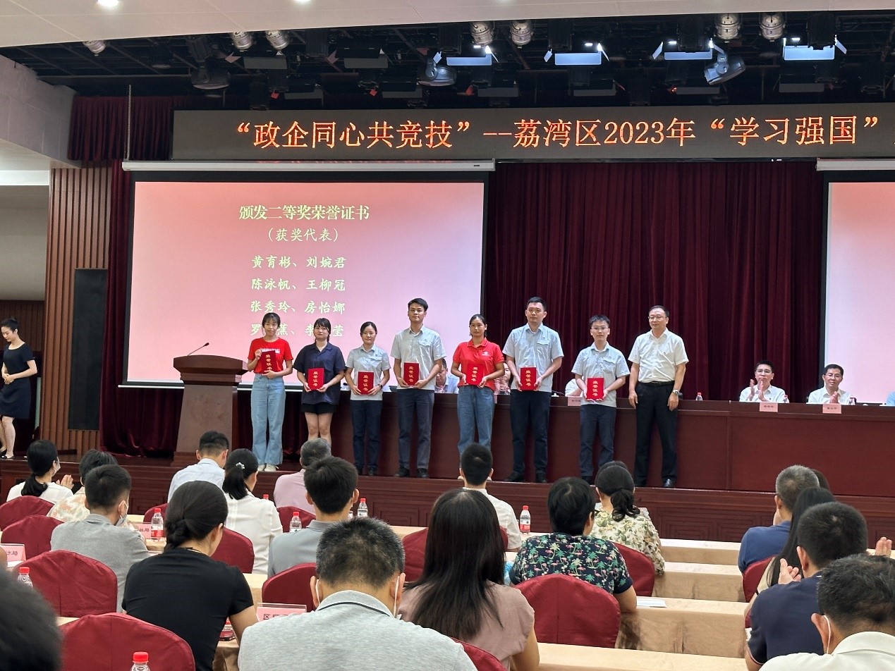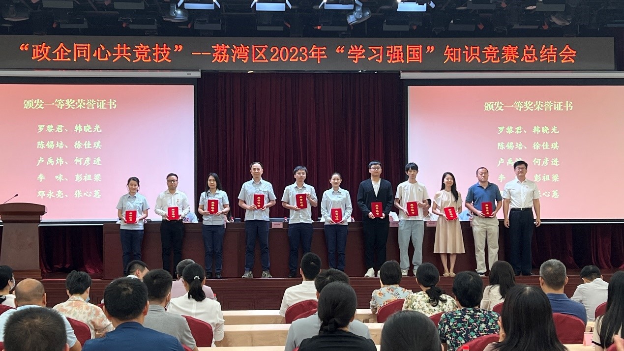 邓永亮(右四)获荔湾区2023年“学习强国”线上知识竞赛一等奖