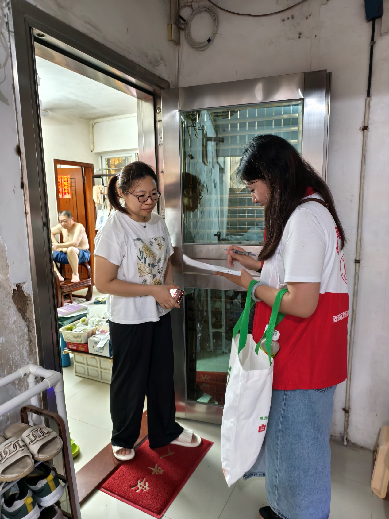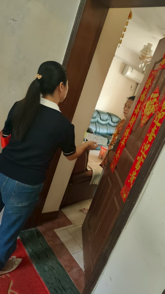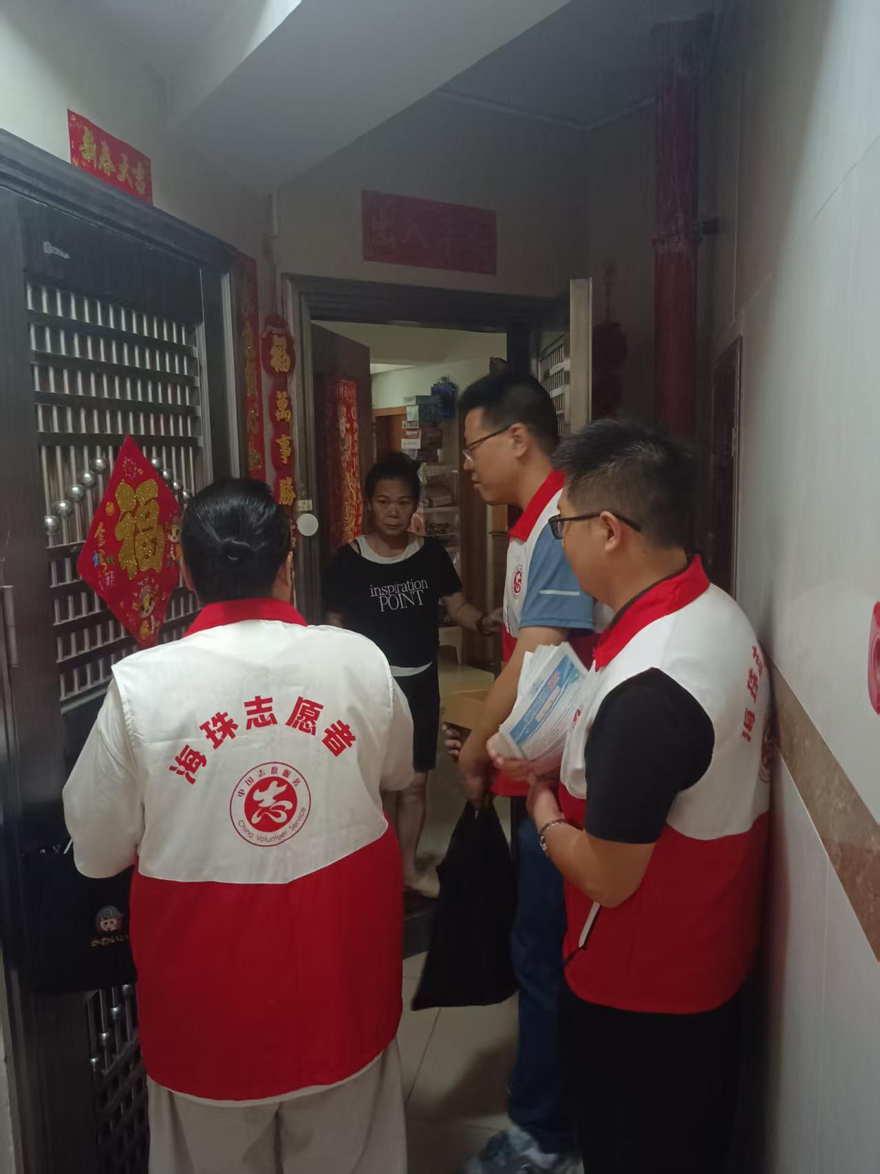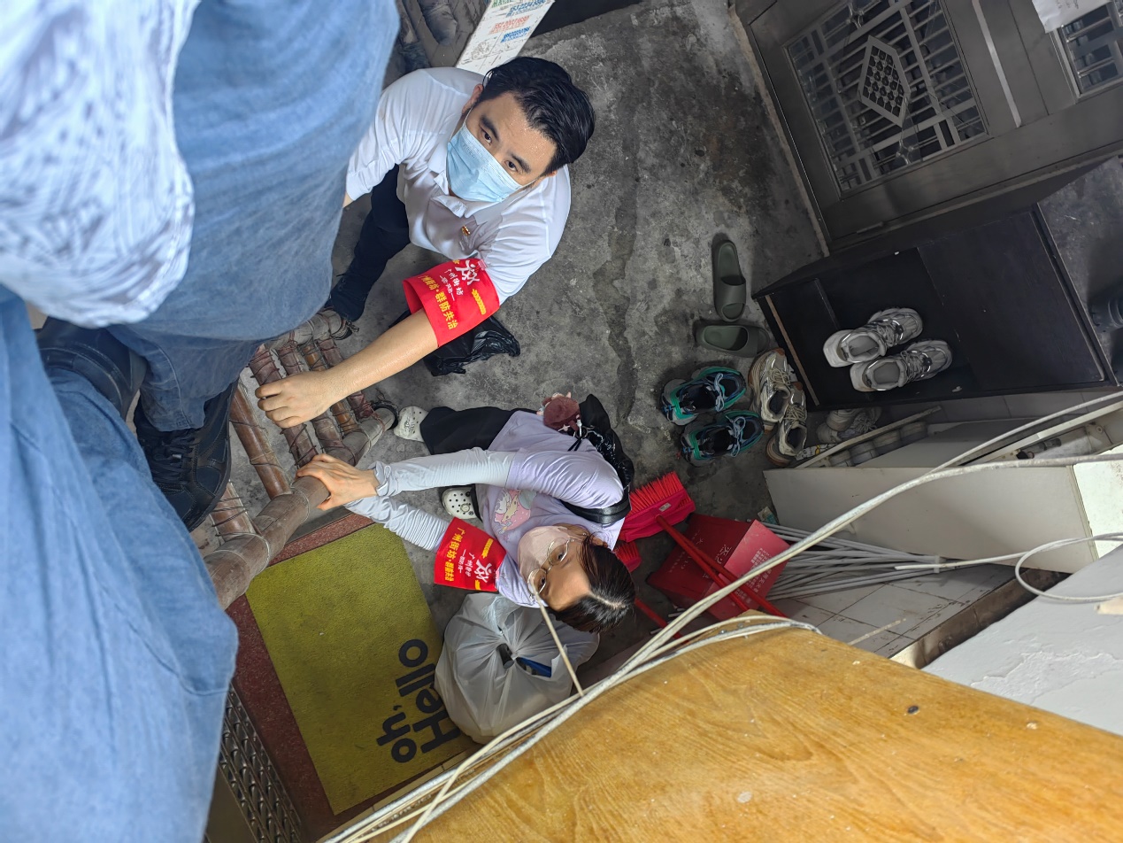 7月19日,在全面吹响志愿服务号角前,支部党员廖思娟已率先投身社区一线,成为志愿服务大军的排头兵。她挨家挨户上门宣传,派发传单,细致讲解灭蚊防蚊知识,用提前行动诠释党员的责任与敏锐。