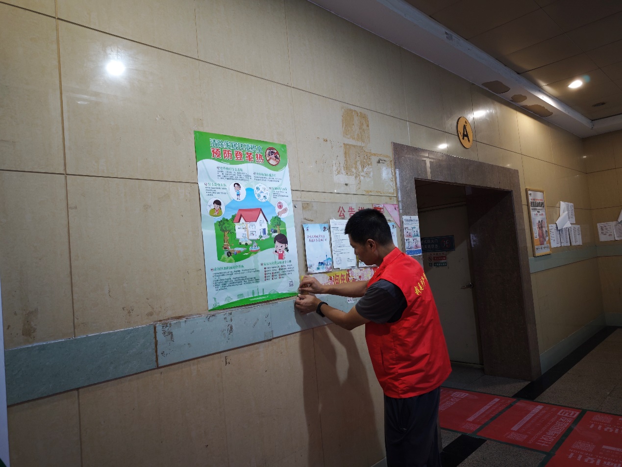 支部党员干部积极响应,支部书记贺兵走进金碧西社区,清理平台垃圾;魏梓新在社区张贴宣传海报,让防控知识走进每一位居民视野;刘海萍、梁洁青分别在素社中社区与金道社区开展宣传,上门派发宣传单张,讲解防蚊要点;陈嫦平与陈汉滨则聚焦大石社区"党员责任区"天台,仔细清理积水,从源头切断蚊虫滋生链条。