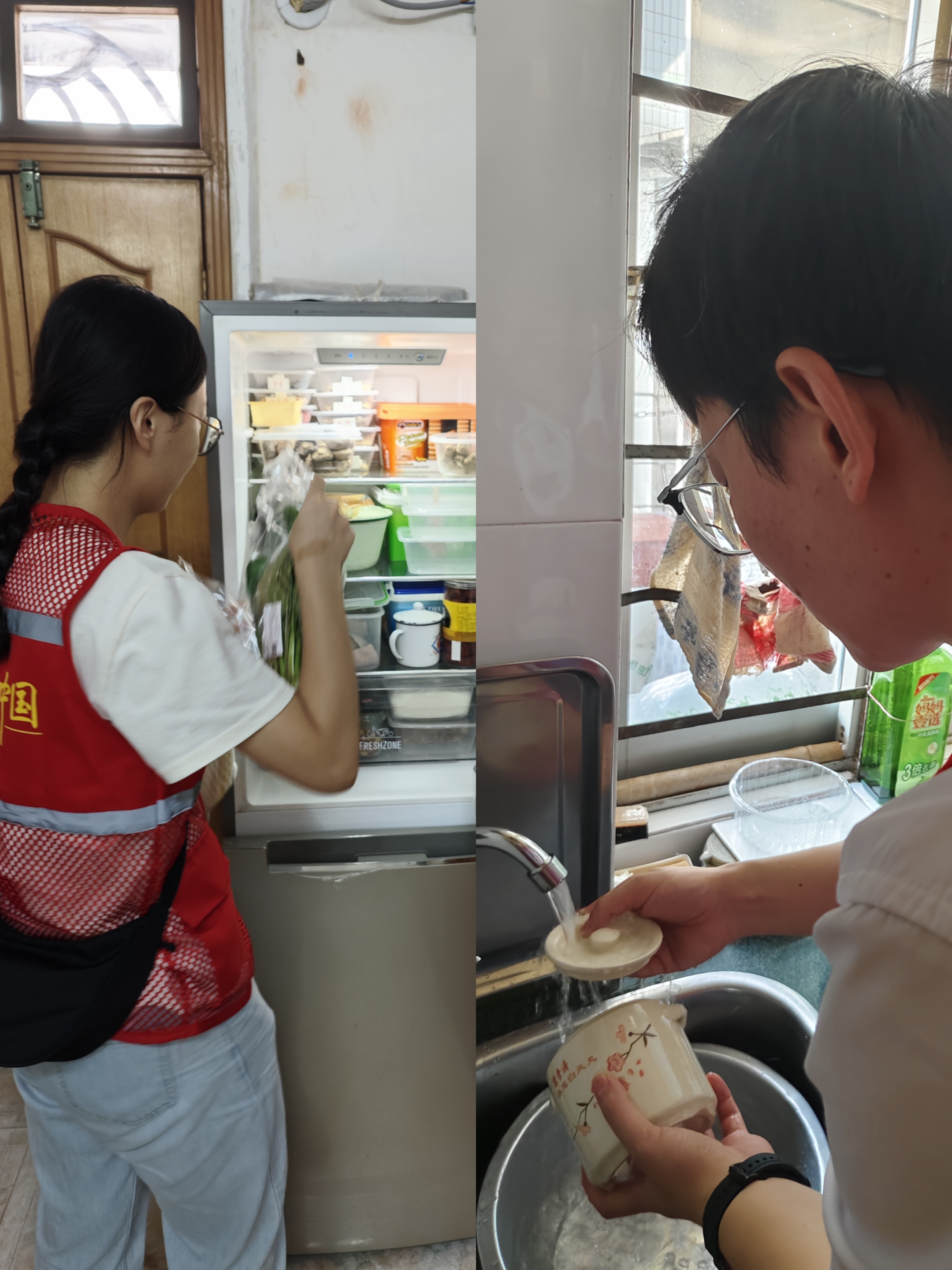 同时主动帮胡婆婆收拾厨房卫生、整理冰箱食材。