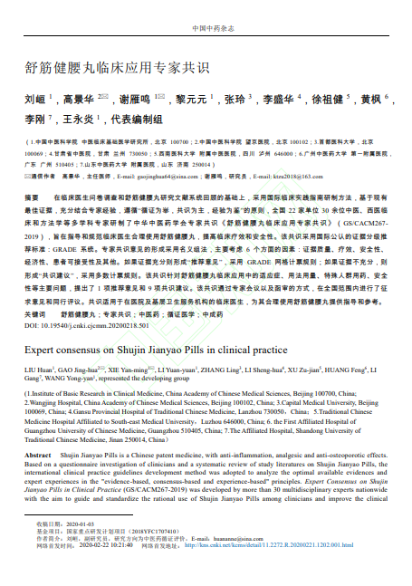 • 核心共识确立地位:2020年,首部《舒筋健腰丸临床应用专家共识》正式发布,明确指出舒筋健腰丸可用于腰椎间盘突出症、腰椎管狭窄症引起的腰膝酸痛及坐骨神经痛,以及膝骨关节炎引起的膝关节疼痛(证据级别C,强推荐),并扩展用于强直性脊柱炎、骨质疏松症引起的腰膝酸痛(共识建议)。共识认可其与非甾体抗炎药联用,体现了在现代综合治疗方案中的重要价值。2023年再度入选《腰椎间盘突出症中西医结合诊疗专家共识》,标志着其在骨伤科主流治疗领域的学术地位不断巩固。