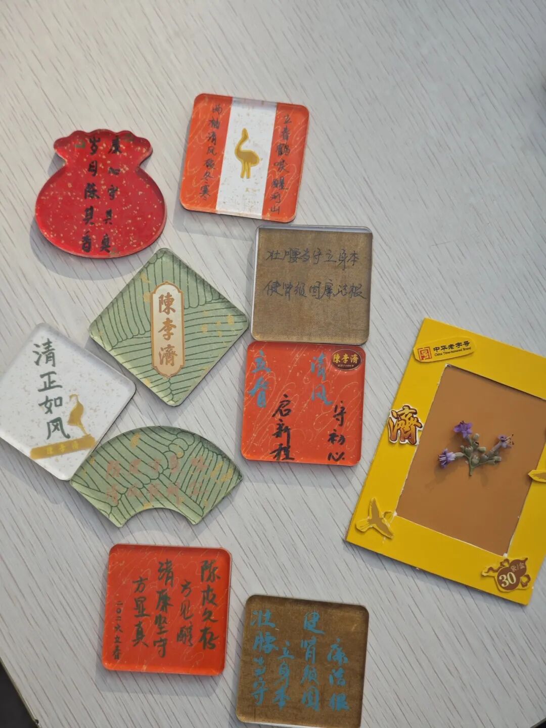 活动现场气氛热烈,大家围绕玉屏风袋泡茶、补脾益肠丸、壮腰健肾丸等陈李济特色产品特性展开研讨,提炼出“壮腰当守立身本,健肾须固廉洁根”“立春鹤唳醒河山、两袖清风破春寒”“陈皮久存方见醇,清廉坚守方显真”等廉洁金句,并制作成创意冰箱贴。在手工创作环节,各组巧用产品包装,结合中医药“扶正祛邪”理念,制作出寓意鲜明的廉洁手工作品。代表们依次上台分享创作思路,将中医药智慧与廉洁文化的融合阐释得生动透彻。活动尾声,全体人员手持廉洁道具合影留念,定格下这场清风拂面的活动瞬间。
