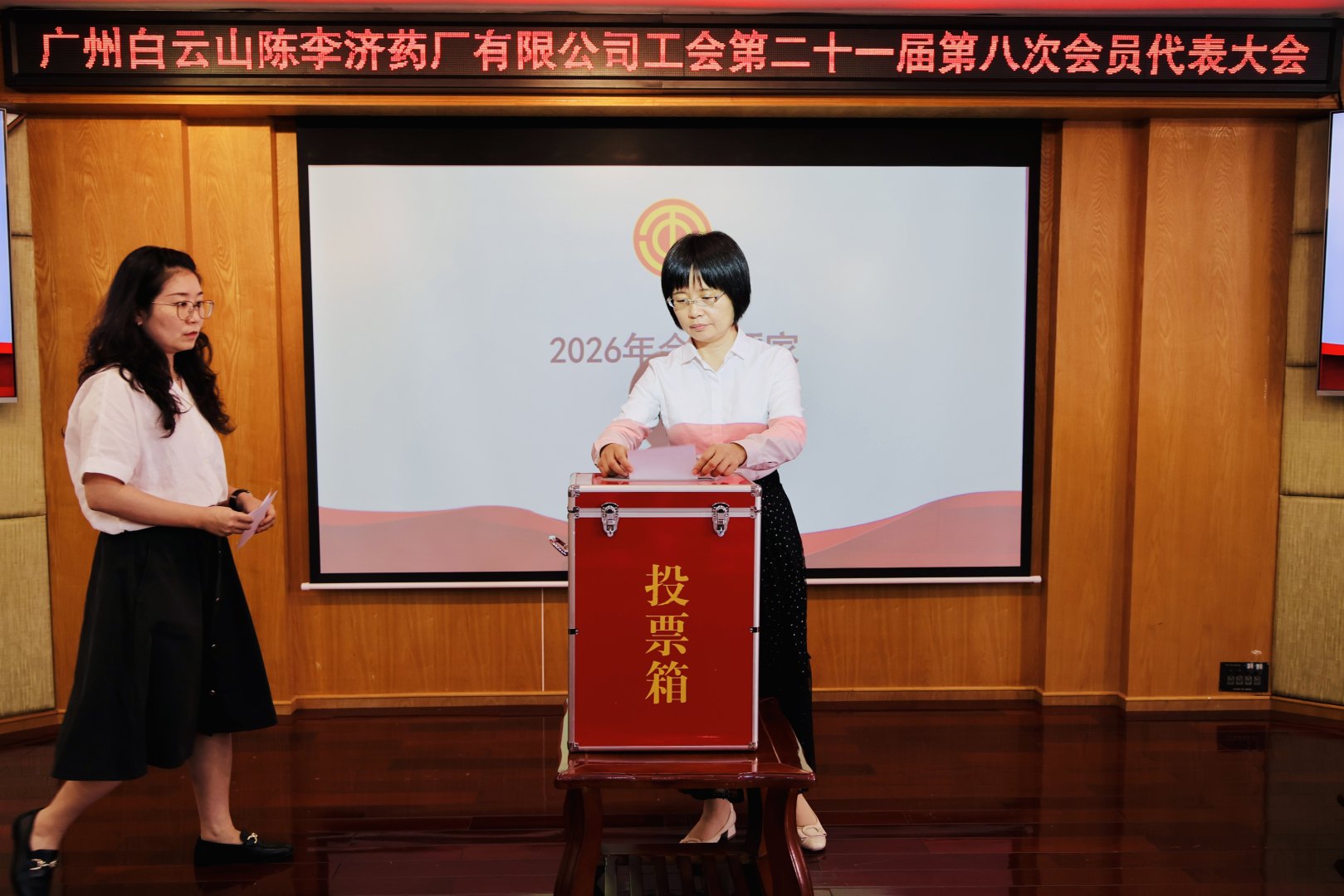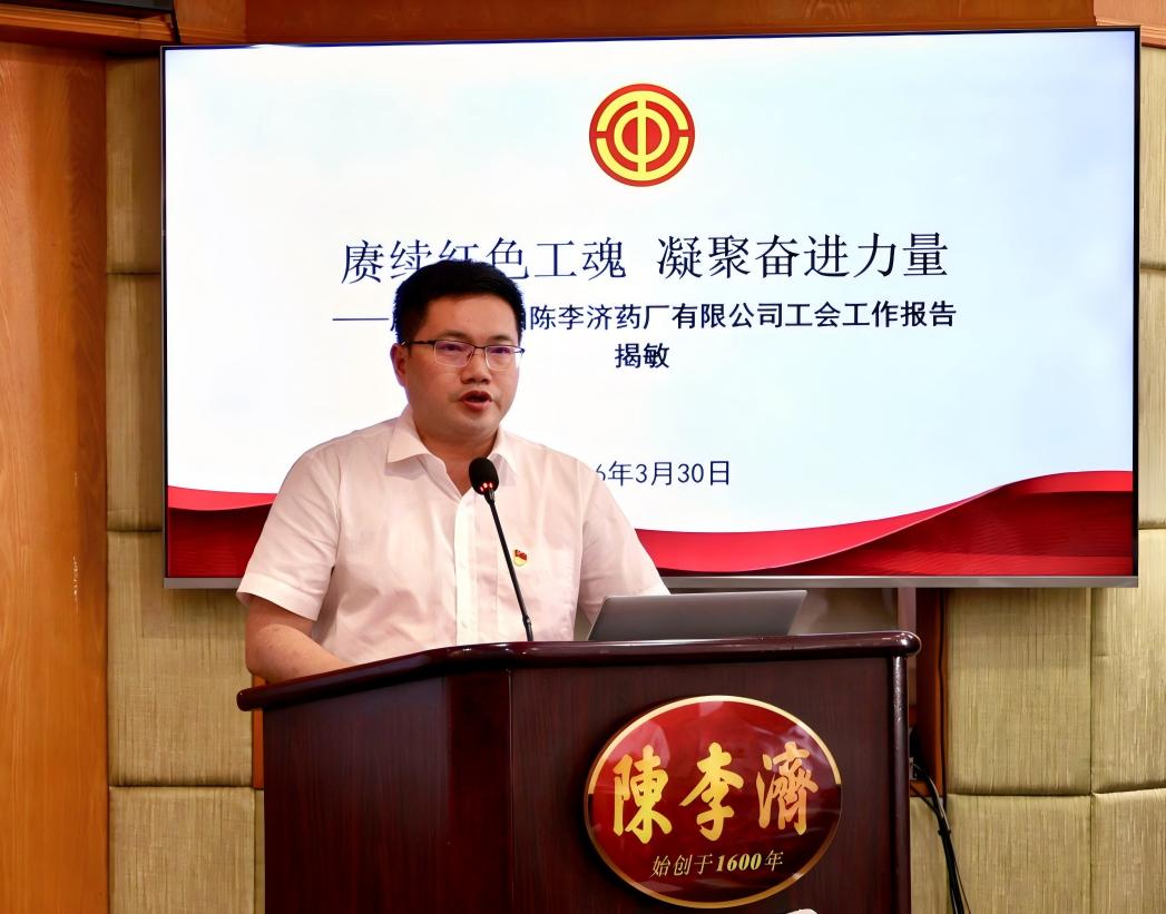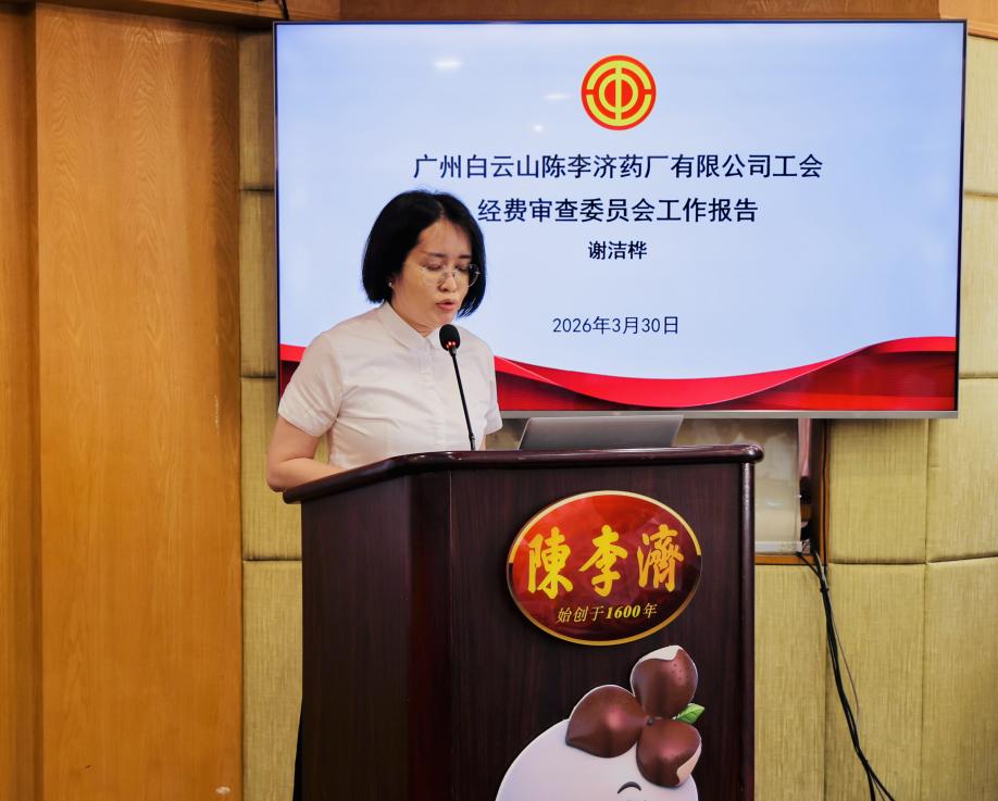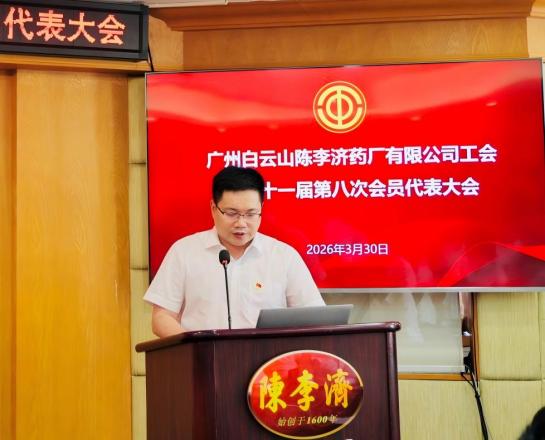 2026年3月30日,广州白云山陈李济药厂有限公司工会第二十一届第八次会员代表大会顺利召开。公司工会主席揭敏主持会议,公司党委书记、董事长刘国伟及公司领导出席会议,全体工会会员代表齐聚一堂,共商工会工作、共话企业发展,大会圆满完成各项既定议程。