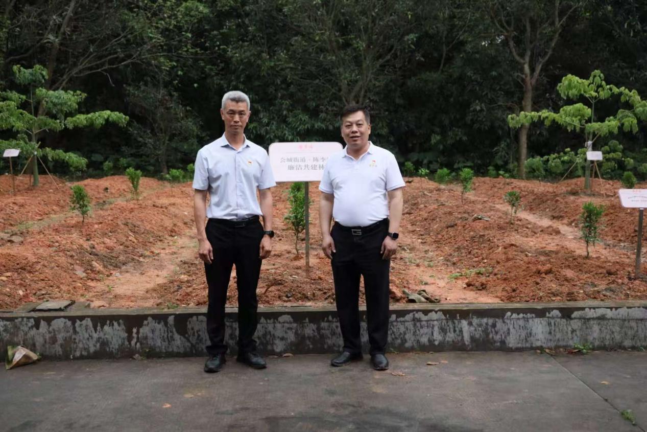 随后,双方领导共同为《会城街道·陈李济廉洁共建林》揭牌,将企地共建承诺深深根植沃土,为本次植树活动赋予特别的意义。