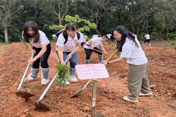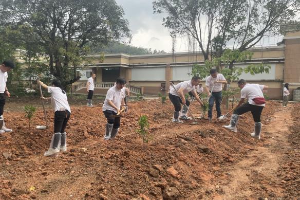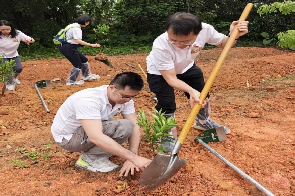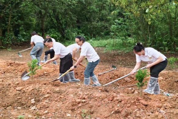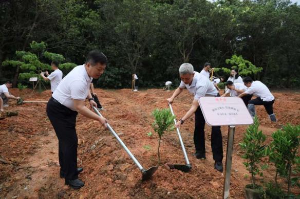 植树现场热火朝天、干劲十足。双方领导带头走进“廉洁共建林”,与大家一同栽种木棉树苗与茶枝柑树苗。大家配合默契,严格按照规范完成挖坑、扶苗、培土、浇水等种植工序,新栽的树苗迎风挺立,生机盎然。