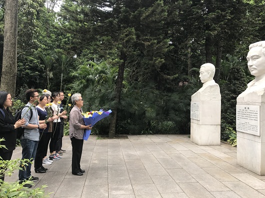 4月19日,在广州起义烈士陵园,崔静薇带领陈李济党工团代表向杨殷烈士敬献鲜花,感恩先辈牺牲自己,为后代创造了幸福生活,也祝愿陈李济、广药集团事业蒸蒸日上!