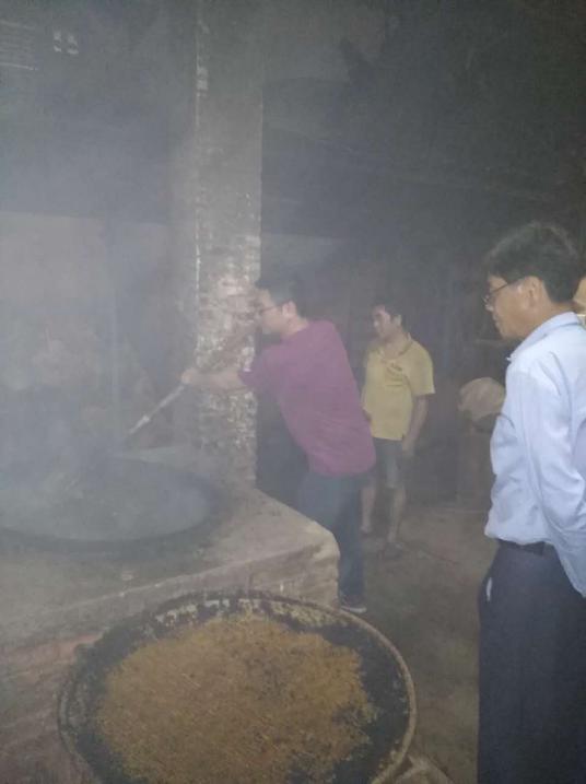 第三步,感悟陈李济炮制精神。一代代药师在前处理岗位扎实工作,为陈李济保驾护航,形成了陈李济独有的精神风貌;陆叔在前处理一呆就是三十几年,从基础学起到成为一名合格的药工,付诸的努力和用心可想而知。而在机械化操作当下,要想保证炮制的效果,“差不多的思维”要不得。为了让我们更加清楚认识制没药的炮制工艺,陆叔带队,先后两次去厂外车间,他一边操作一边讲解,从下锅翻炒的速度和力道,到锅底火候的掌握,以及出料摊凉的卫生要求,面面俱到,娓娓道来。等我们理解后,他还要求我们上手操作,感受炮制操作过程……通过陆叔的言传身教,他那对炮制每一个工序的严谨态度深深触动着我;他还带我们认识和拜访过其他老师傅。陆叔常谦虚说的:陈李济比我好的制药师傅有很多。正是这一群群一代代的制药人,延续着陈李济的制药匠心;而我深感幸运,有机会见证、参与并感受着这份悠久又优秀,传统又富含时代感的职业精神。