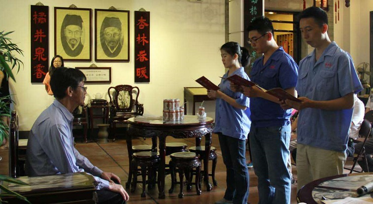 “铭记公司先人古训:火兼文武调元手,药辨君臣济世心。愿拜陆树端师傅为师,谨遵师傅教导,研习炮制工艺,继承制药传统,弘扬匠心济世精神”。每每回想起在博物馆宣读拜师帖仍心潮澎湃。时间如白骥过隙,转眼间,跟着陆叔和同事在车间学习、工作就已经一年时间了。一路走来,这一年我收获很多,感触很深,总结为三步曲: