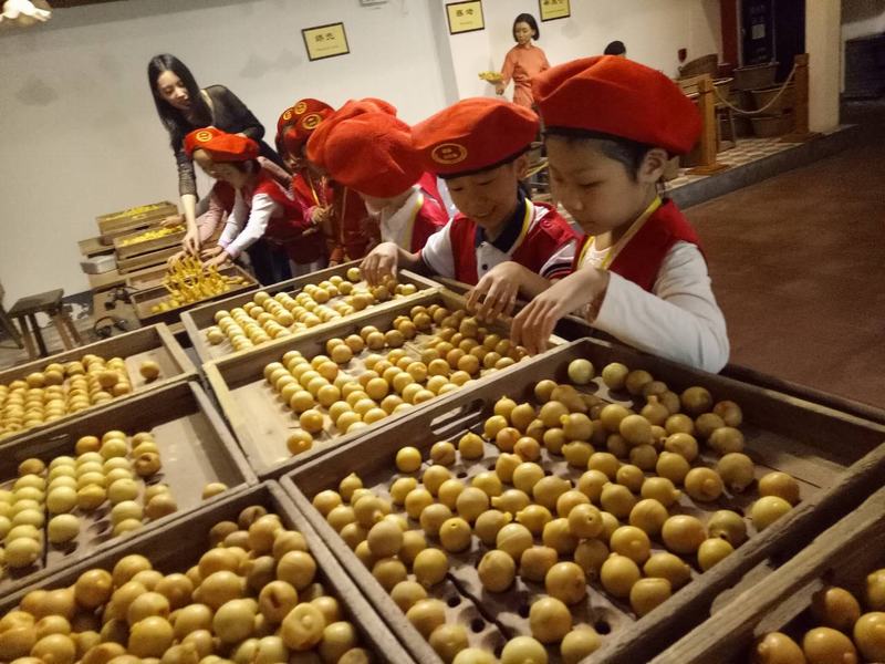 栏目组的小主播们进入陈李济中药博物馆,深深被栩栩如生的人像、丰富多彩的制药工序所吸引住,在工作人员的讲解下,了解到陈李济的镇厂之宝——百年陈皮,这群小主播们纷纷拿起话筒,绘声绘色地描述着陈李济百年陈皮的由来。
