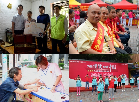 “陈李济大众爱腰日”公益活动如星星之火在全国各地传播了开来,5月21日广州、丰顺、梧州、郑州、西安、石家庄等地区举行了“为爱撑腰,健康中国”——陈李济大众爱腰日公益活动,在接下来的日子里,还会有更多城市参与其中。
